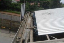 The complete scope of work for the asbestos removal and new IBR replacement is around 34000 m2. One of the biggest challenges we faced, was moving the asbestos and IBR sheets across the 185m sections of roofs. To overcome this obstacle we used a special track-and-trolley system that we designed and installed onto the roof and this allowed us to move the items over the roofs safely and effectively.